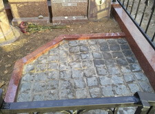 Устанавливаем новый гранитный цоколь. Гранит был выбран красного оттенка (лезниковский сорт гранита), так как хотелось, чтобы последние памятники, цоколь и новые памятники были в одном стиле.