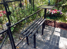 Уложенную на пескобетон брусчатку замыли водой, предварительно установив заказанные клиентом лавочку и столик. В это же время мы смыли образовавшуюся в процессе работы пыль с памятников и оградки.