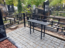 На территорию участка мы уложили гранитную брусчатку, справа от памятника установили простую лавочку без спинки, перед надгробьем разметили гранитную вазу, а цветник засыпали мульчей. Клиент остался очень доволен результатами благоустройства могилы.