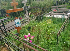 На данном участке изначально находилась старая могила и новое захоронение. На могиле стоят широкий гранитный памятник, левее располагались простые деревянные кресты.