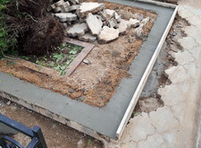 Сначала мы разбираем гранитный цоколь, разбиваем находящийся под ним бетон. В получившуюся траншею укладываем арматуру, по периметру участка возводим опалубку.