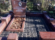 Облицевали бетон полированным гранитом, на территорию участка уложили брусчатку, предварительно приподняв памятник.