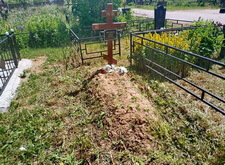 В данном случае нам предстояло полное благоустройство участка. Изначально на территории могилы был только невысокий холмик и простой деревянный крест.