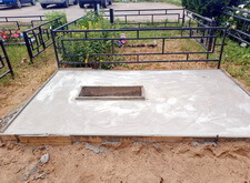 Заливаем бетон. Толщина получившегося основания составляет порядка пятнадцати сантиметров, что является очень хорошим основанием для любого памятника.