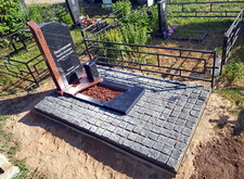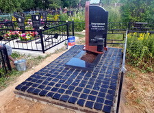 Даём брусчатке высохнуть. Так выглядит место захоронения на момент сдачи объекта, клиент остался очень доволен проделанной работой.