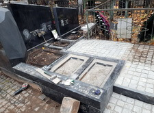 В первую очередь мы начали с подготовки надёжного основания для будущего памятника. Для этого мы раскопали необходимую часть места захоронения.