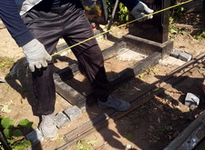 После того, как памятник был отодвинут, начинаем выравнивать его площадку. Досыпаем землю.