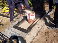 Ремонт покосившего памятника и оформление цветника брусчаткой