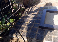 Укладываем брусчатку на пескобетон, которую затем просыпаем пескобетонной смесью.