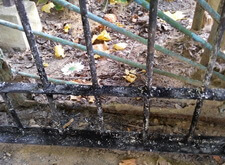 В первую очередь мы обжигаем ограду, необходимо сжечь всю краску, так ее будет проще очистить.